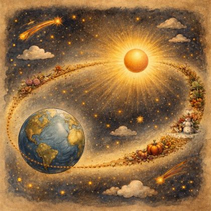 One brief shining: Here I am traveling again on a new circuit around Great Sol, same as the old circuit but new to me in my 79th year, moving fast, leaving flecks of stardust and memories in my wake, ready for a year of creativity and joy.
