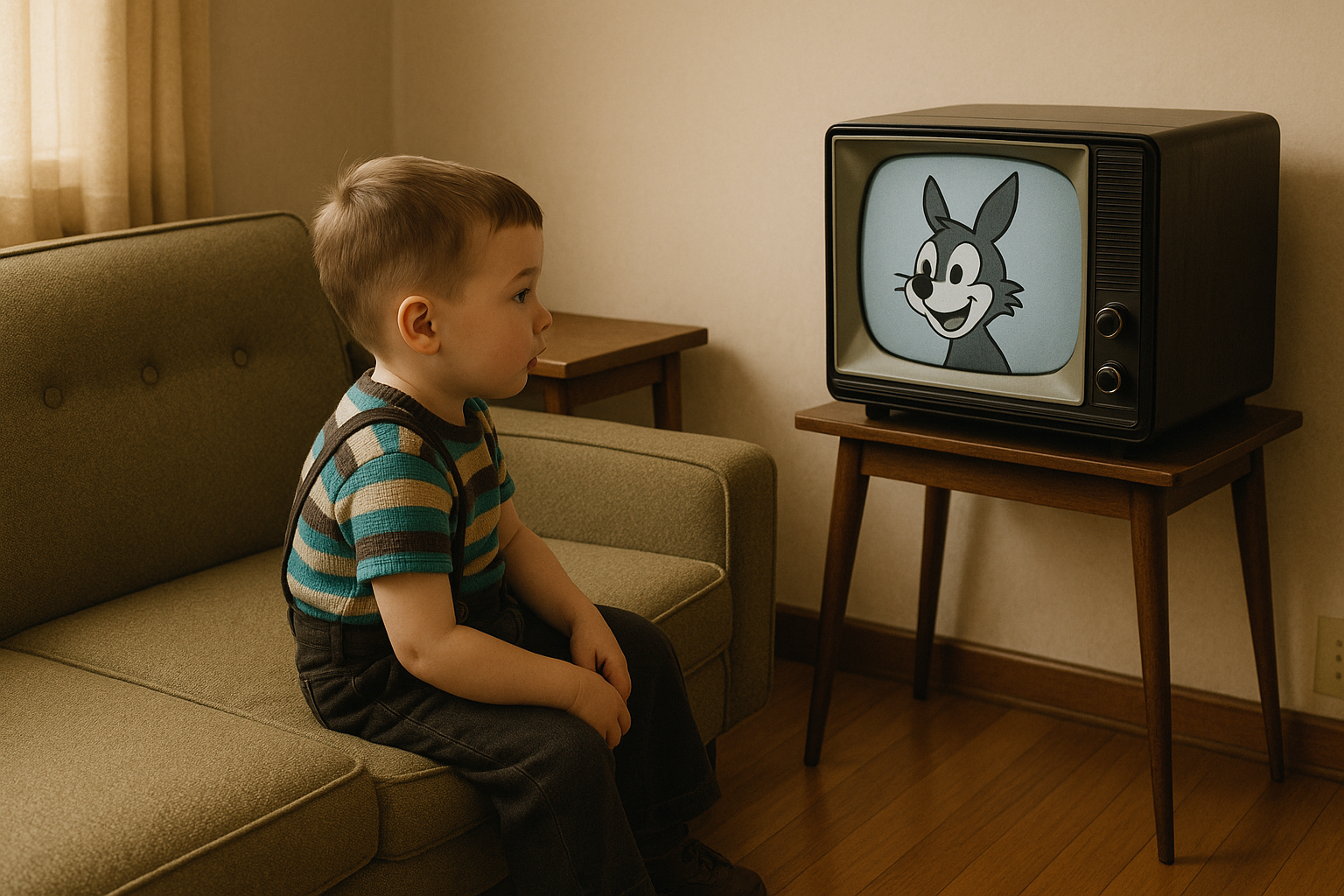 And so. Saturday morning television. The children’s time with cartoons like Woody the Woodpecker, Donald Duck, Yosemite Sam, and Tom and Jerry. Also, dramas. Roy Rogers, Captain Midnight, Sky King. Captain Renfrew of the Royal Canadian Mounted Police and his dog, Lightening, Tarzan, and the Cisco Kid.