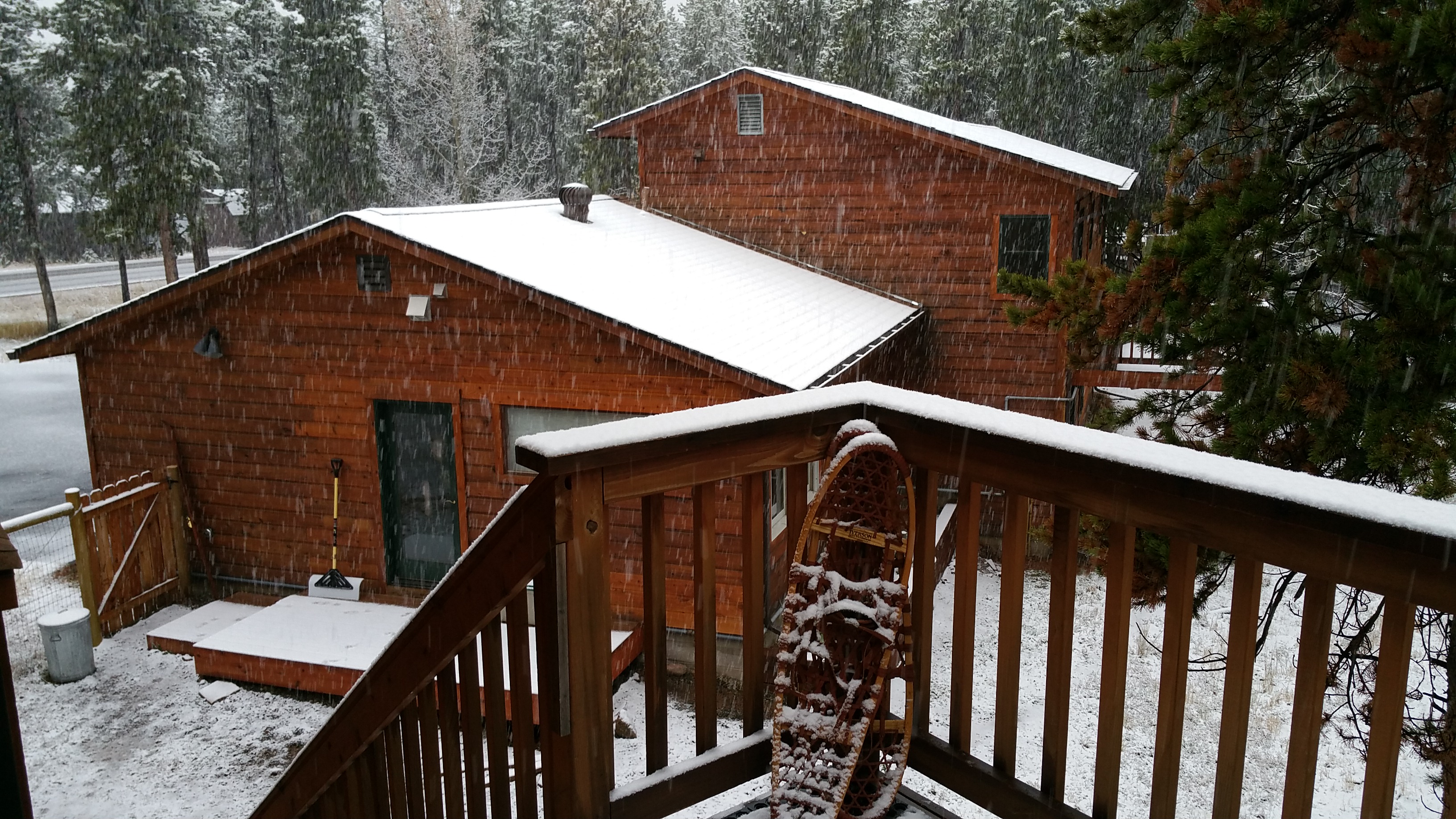It has snowed all morning, a heavy wet snow. It clings to the lodgepole branches, their burdens bowing the green needles toward the ground. The sky creates submission to the earth.