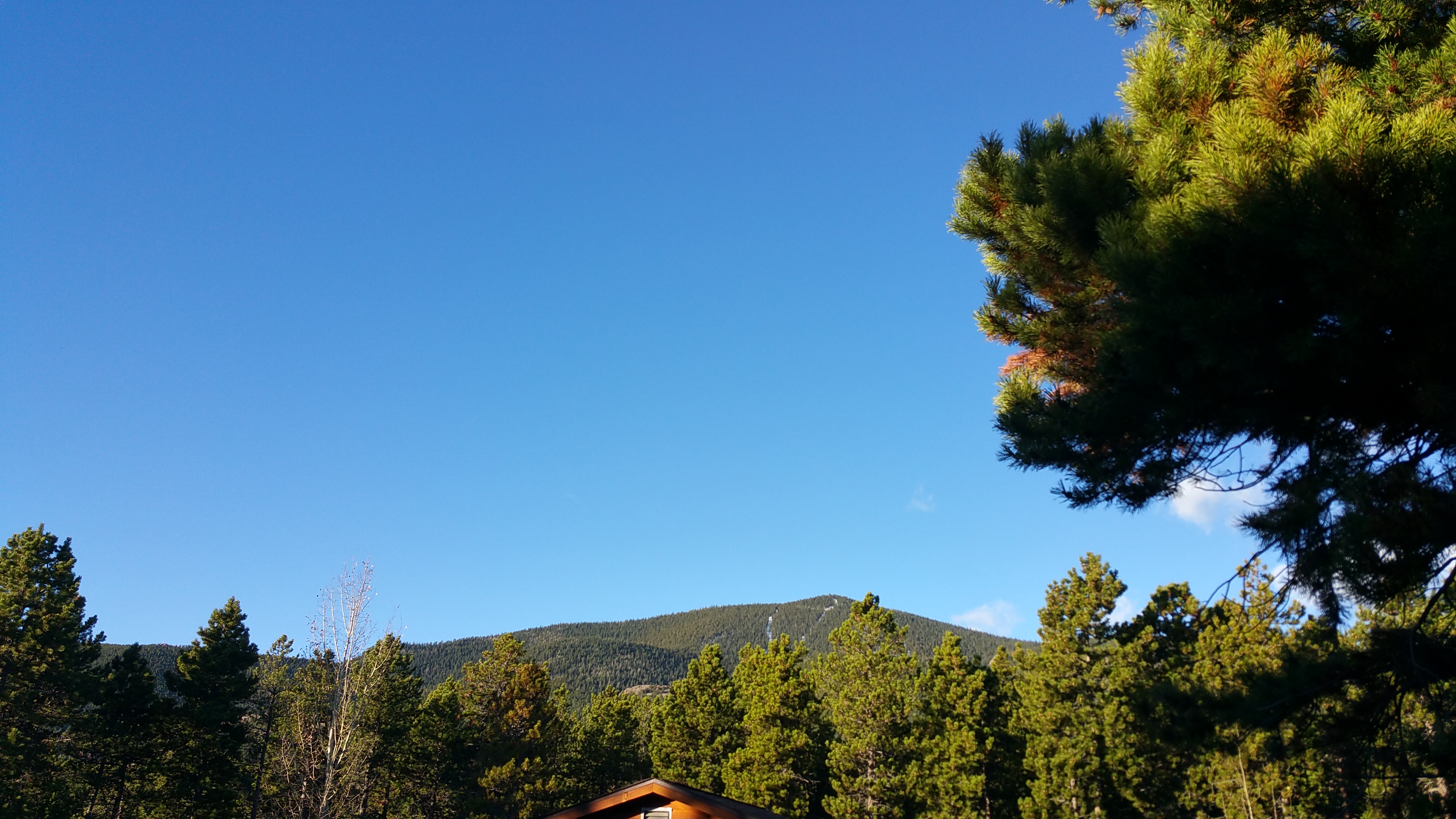 The final days of the Elk Rut moon are gorgeous, sunny ones. The aspen trees with their leaves still on the tree, lower down from us, blaze like magic lanterns, yellow-gold against deep green. The yellow-gold has faded to a tannish yellow on Shadow Mountain where the leaves remain. Black Mountain, which had yellow gold streaks in its green hair much like grand-daughter Ruth’s pink ones, has bald spots sprinkled here and there with darkish browns, a mountain’s equivalent of gray hair.