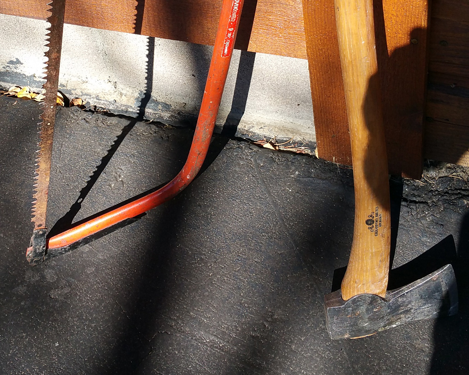 Late fall, early winter work outside. Good aerobics. Especially when I cut the trees down with an axe like I did yesterday. With a lot of huffing and puffing. I’ll use the axe when I can because I like the handwork aspect, but the chainsaw will allow me to finish the task in a timely manner.