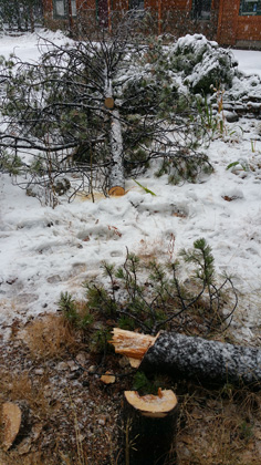 Another factor I hadn’t considered when felling the trees during a heavy snow was the additional weight on the branches. Trees have to be limbed before the trunks can be moved and each limb had an added amount of water. That made moving each branch more difficult.