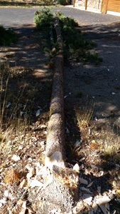 Got started yesterday. The first lodgepole I cut down stood directly in the way of backing out of the garage. It doesn’t now. I know, this may seem callous, cutting trees down, but in actuality I’m thinning a garden bed, leaving more room and therefore more nourishment for the trees that remain.