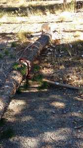 Two more trees down yesterday morning. Much easier without the snow load. My slash piles near the driveway are part of the process. Last year when I came out for the closing on October 31st there were signs for slash collection. What was slash, I wondered? Now, almost a year later, I have created substantial piles of it myself. It’s tree tops, branches and the occasional thinner or split portion of the tree trunk. It gets collected because removing trees for fire mitigation and leaving slash on the ground makes a greater fire hazard than the one you had before.