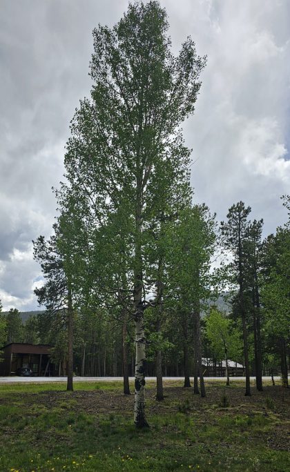When we first moved here on the Winter Solstice of 2014, this Aspen had no leaves. Tiny shoots of its clones were hidden beneath the Snow cover. But they were there.