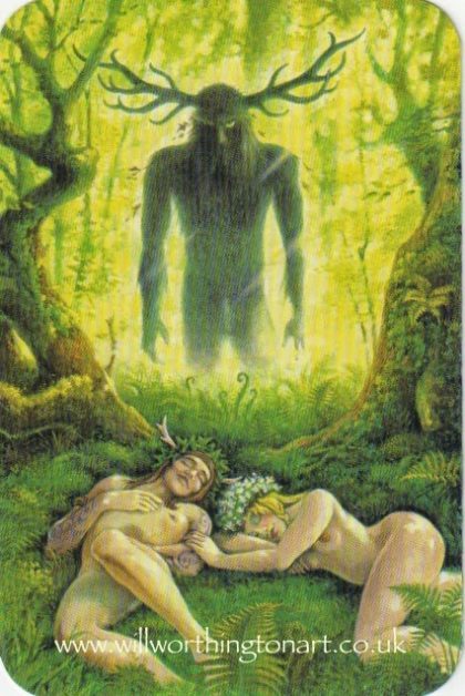 Looking at the card, it seems to me that a dawn has begun to emerge through the trees. The woman’s bare foot, her left appears ready to take a step, a step toward the opening in the swords. A way out of the dilemma. If she touches a sword, she’ll realize she can cut her bonds. Then remove the blindfold on her own.
