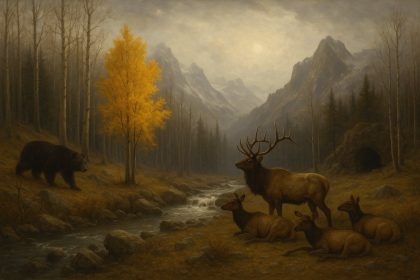 A quiet anticipation. Black Bears nearing the end of hyperphagia, hunting for or returning to dens to sleep away the fallow time. Elk Cows and Mule Deer Does quickening with Calves and Fawns.
