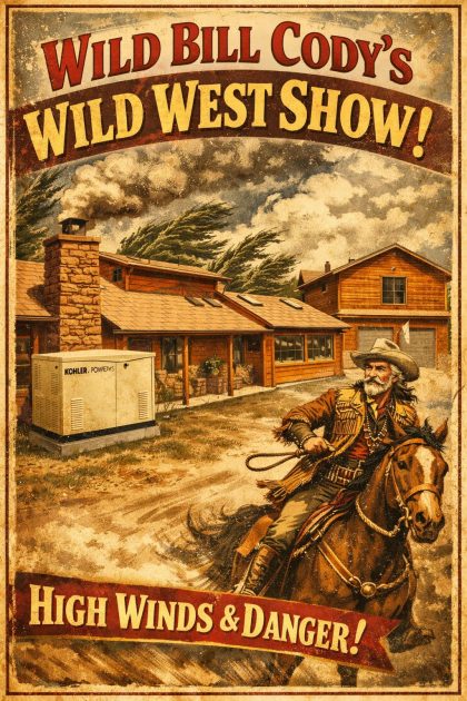 We gritted our financial teeth and bought a Kohl whole-house generator. These generators connect to gas lines and have automatic transfer switches that sense a power outage. The transfer switch turns on the generator and switches its output to the house’s electrical panel. Happy Kate. Happy me.