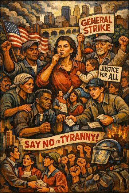 But not America. As a 40-year resident of the Twin Cities, I’ve never been more proud of my adopted home state. America has shown up on the streets of Minneapolis, in a thousand acts of protest, in a general strike!