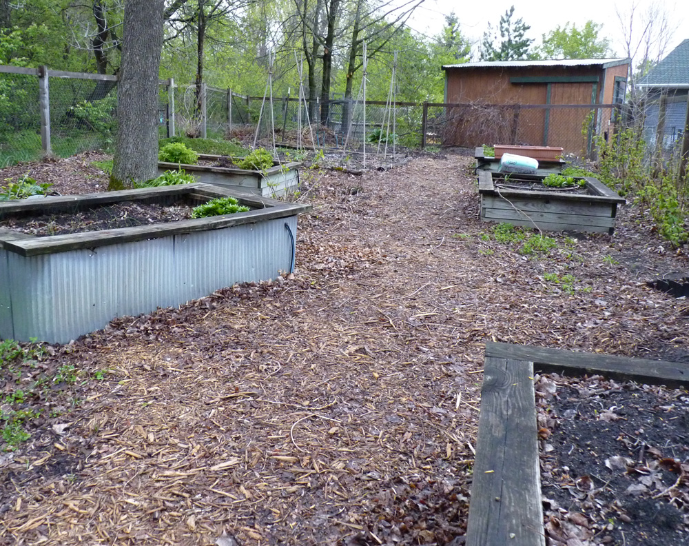 After a while, I asked Jon to build us some raised beds, anticipating the period in which we are now, with backs not as amenable to stoop labor. Even then, with the fence and the raised beds, I still focused on flowers, while Kate grew some vegetables.