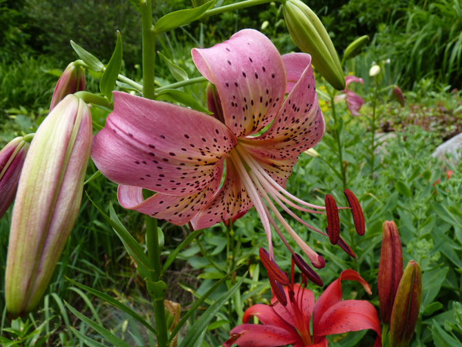 Picked up many interesting lilies, sticking roughly with the purple theme of our garden, though there are some yellows and whites mixed in for contrast. The martagons, which I wanted, were $22 a bulb, too precious for my taste this morning.