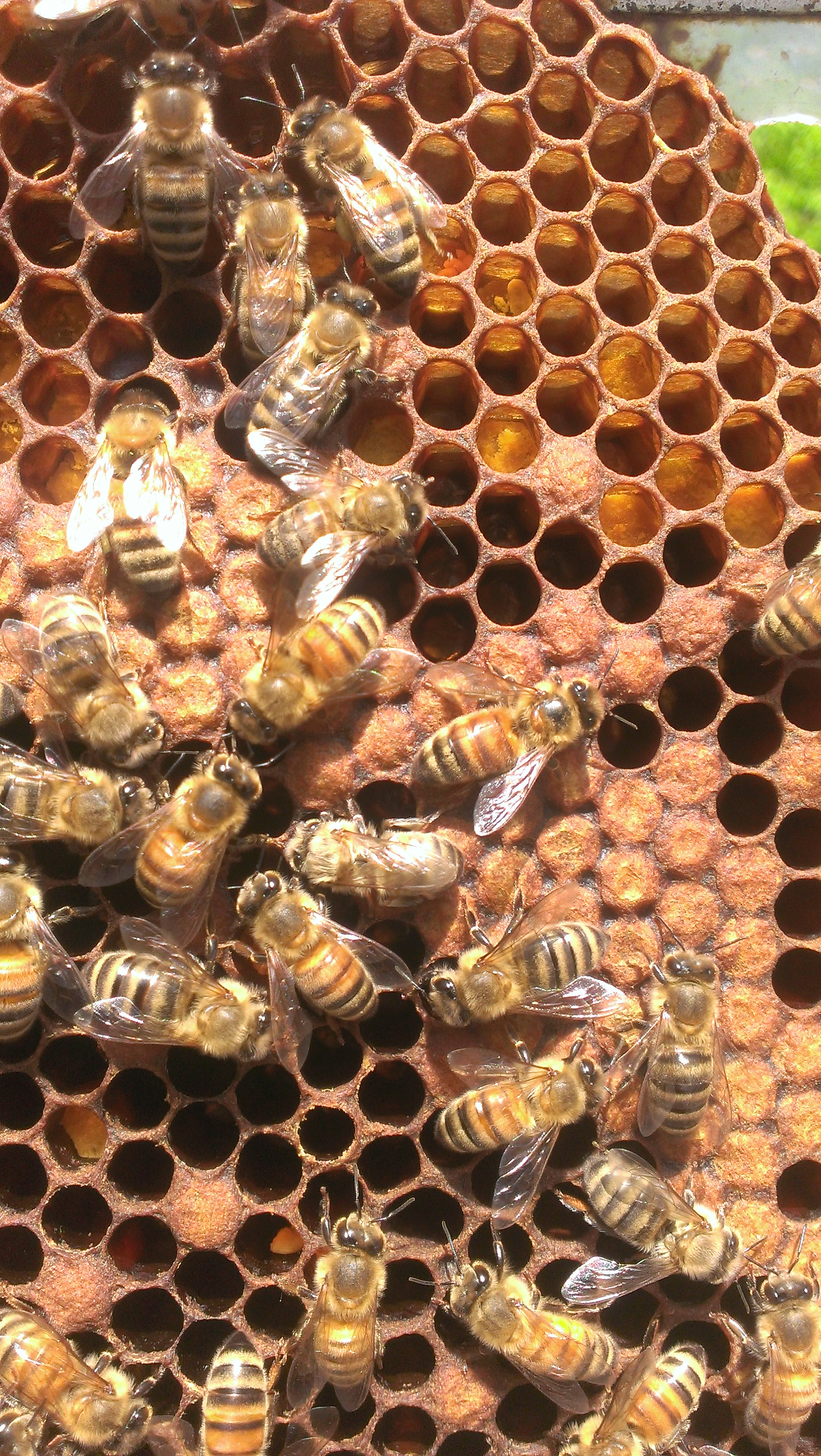 The day began with the bees, lively and growing, now well into the second box, already filling two frames with brood, making honey and collecting pollen. After the bees, more honeycrisp bagging. Yes, this is a pain, but it’s a one and done pain. That is, after you do it those apples are ok. I may start a feeding program this year for the orchard, but that’s separate from the immediate disease and predation prevention.