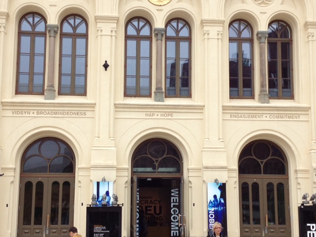 Humanities, Travel, Woolly Mammoths Vidsyn, Hap, Engasiement June 27, 2013 Charles Leave a comment Summer Solstice Moon Friend Tom Crane sent this picture from the Nobel Peace Museum in Oslo, Norway: What if these virtues were widely practiced?