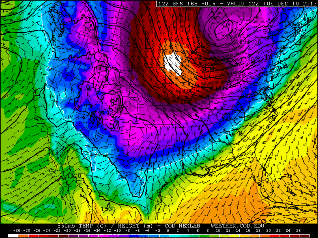One Unpleasant White Spot. Here’s a graphic and comment I received from Dean DeHarpporte, a consulting meteorologist here in the Twin Cities: “Paul, I cant resist sharing with you this GFS 850mb prog for next Tuesday Dec. 10, at 12Z. I cant remember ever seeing a white color on this map, which is the coldest color classification available (- 30C). The fact that it is centered directly over Minnesota is quite astounding.” (map: College of DuPage). (from Paul Douglas Weather Blog)