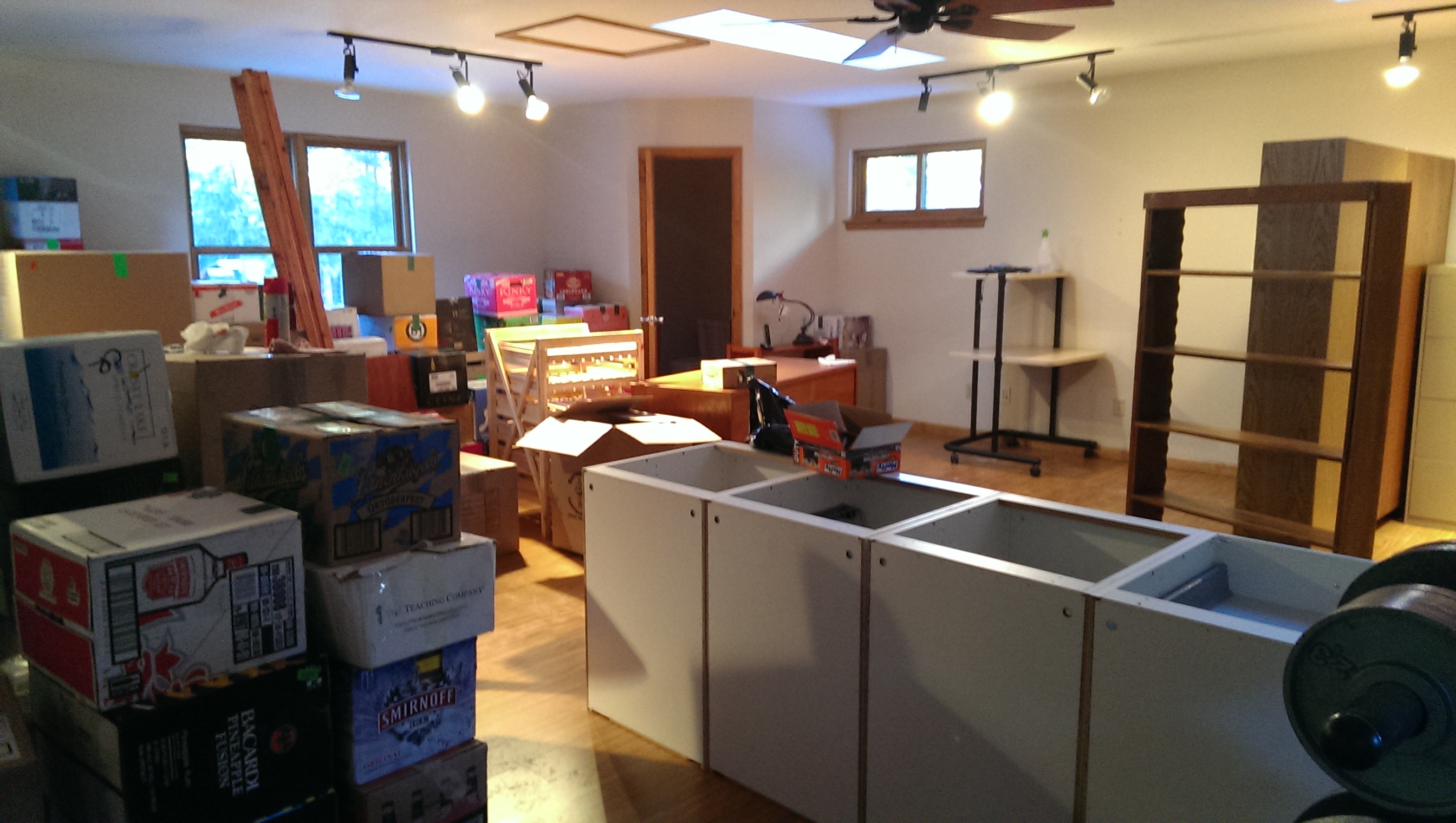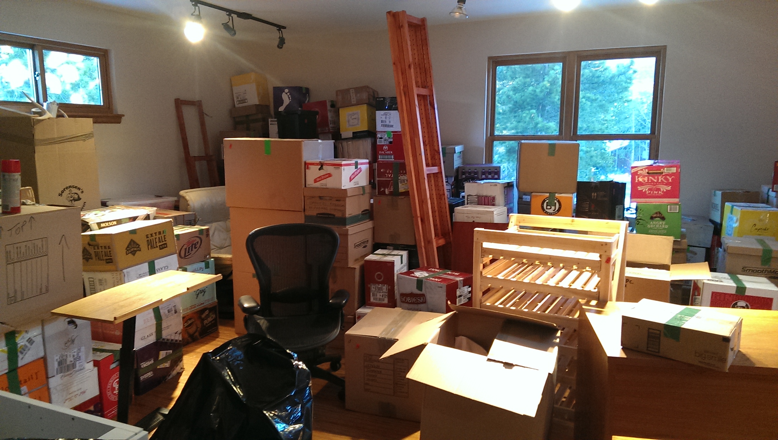 The wall space necessary for rebuilding the IKEA bookshelves is free. Almost all of the books are deboxed. (well. deplane, detrain) Slowly, slowly. But steadily.