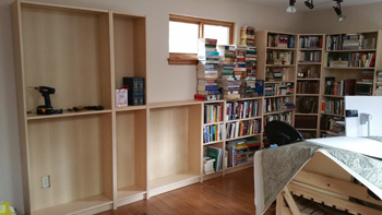 Jon’s coming out today to do more bookshelf and handyman work. Jon’s skills make a big difference for both Kate and me. We’re lucky to have him.