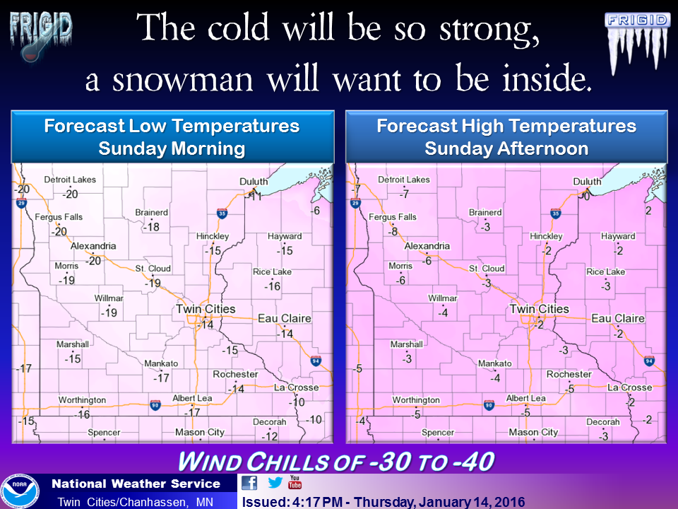 In Minnesota, not often, but often enough, you realized the weather could kill you. No winds necessary. This will be one of this times.